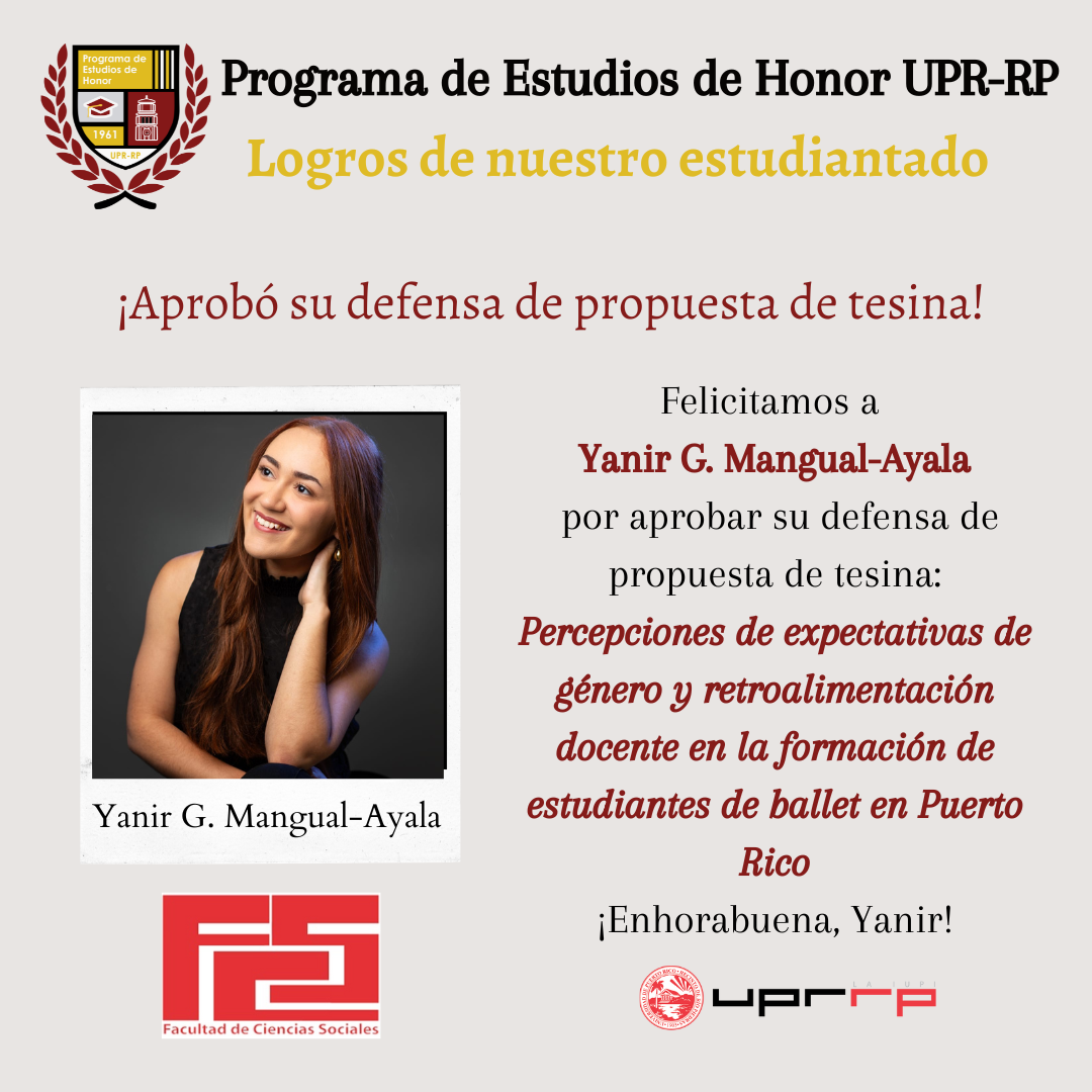El PREH está dirigido a estudiantes de nivel universitario subgraduado con un promedio general acumulado (GPA) de 3.50 o más y que dispongan del tiempo suficiente para cumplir con los requisitos establecidos. El estudiante debe demostrar un interés serio en aprovechar plenamente su experiencia educativa universitaria y evidenciar su capacidad para realizar satisfactoriamente el trabajo requerido.